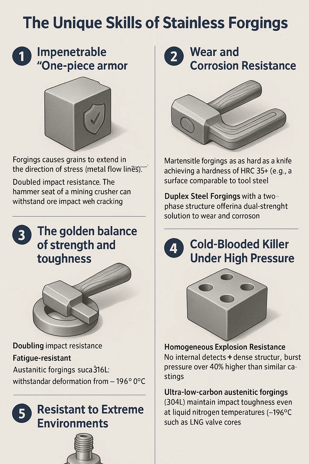 Både stivhet og fleksibilitet: Austenittiske forgaver (for eksempel 316L) er utrolig tøffe, motstå deformasjon fra -196 ° C til 800 ° C.